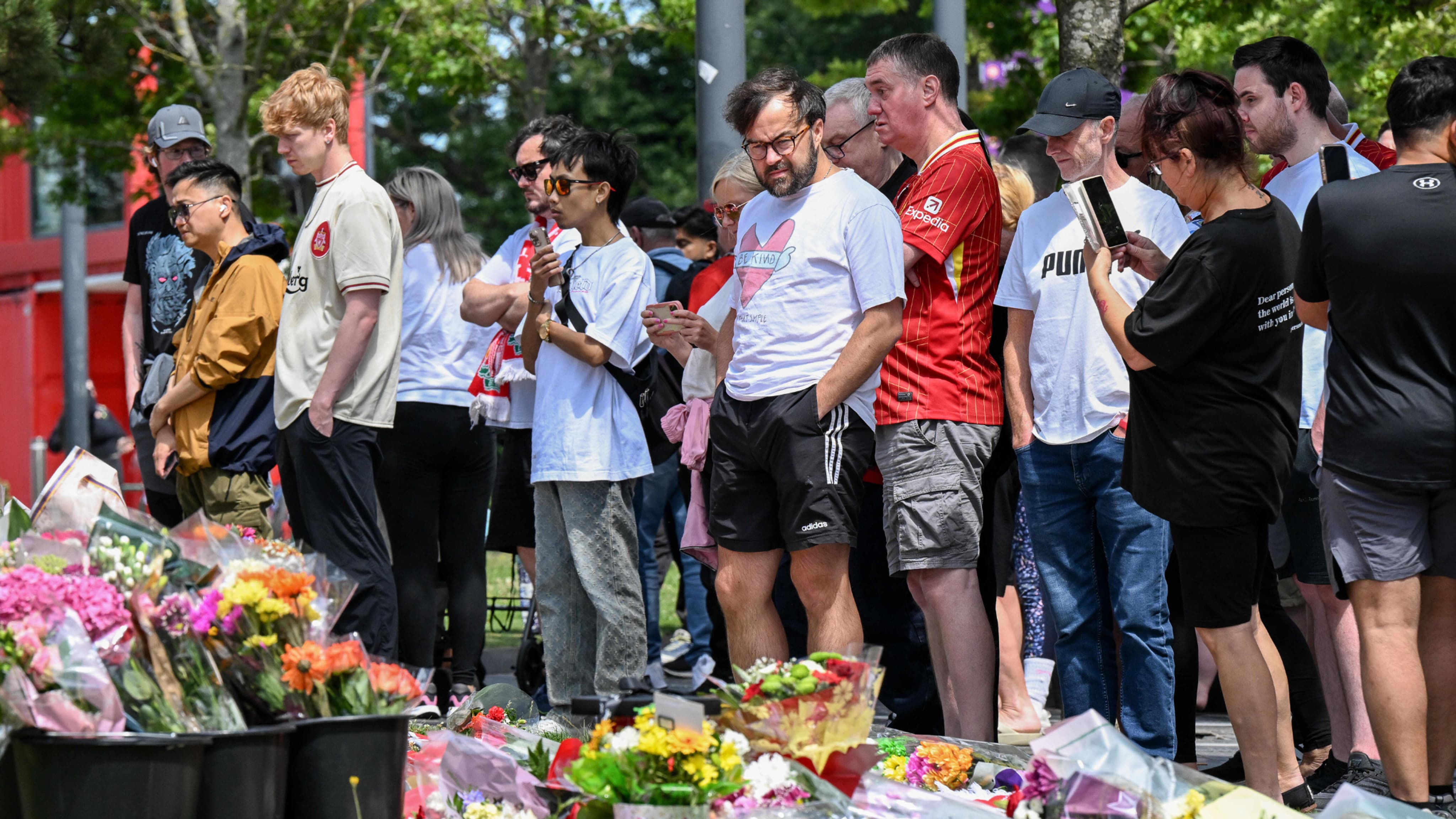 Près du mythique stade d’Anfield, des dizaines de supporters des Reds ont déposé des gerbes de fleurs, des ballons de baudruche en forme de coeur et des écharpes avec la mention « Repose en paix Diogo Jota ». « C’est tellement dur. C’est comme un deuil familial, honnêtement. Les buts qu’il a marqués, les souvenirs qu’il nous a donnés… nous ne pouvons pas le remercier assez », a estimé Tom Barry, mécanicien de 32 ans, vêtu d’un maillot rouge de Liverpool avec ‘Jota 20’ dans le dos. « Il est parti trop tôt, mais sera à jamais dans nos coeurs… Je suis sans voix. J’ai juste ressenti le besoin de venir ici pour lui rendre hommage », poursuit Abdul, ambulancier de 30 ans.