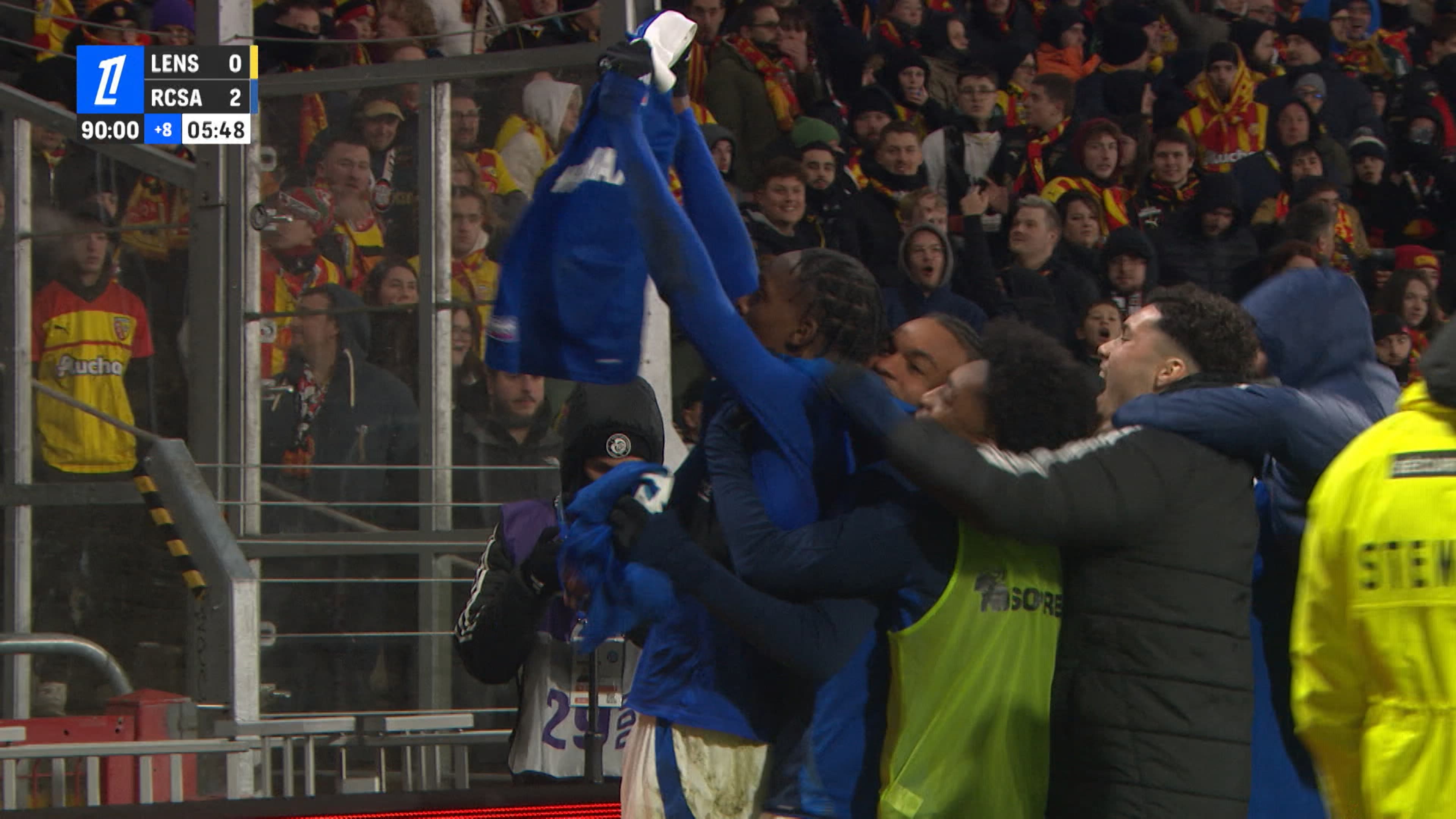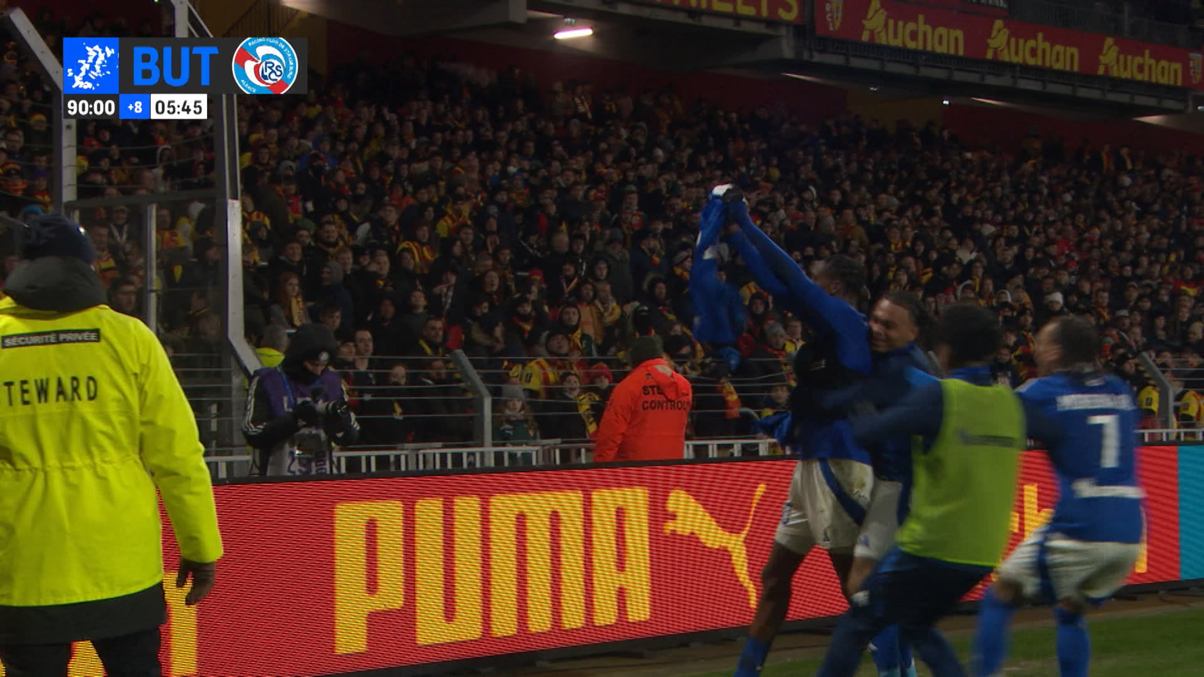 Profitant d’un rush dévastateur de Dilane Bakwa, après avoir chipé le ballon dans les pieds de Jeremy Agbonfifo, l’avant-centre néerlandais a marqué le deuxième but des Alsaciens (90e+6). Et il l’a fêté en enlevant son maillot pour venir le brandir au pied du parcage visiteurs du stade Bollaert. Rapidement rejoint par ses partenaires, qui l’ont chaudement félicité, Emanuel Emegha a profité de cette joie collective, avant de montrer une deuxième fois au public son maillot floqué du n°10.